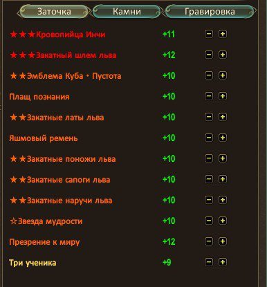 руны: 1х10я, 3х9ых, остальные 8ые.