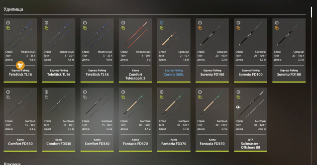 Поплавочная ловля 43,8%; Спиннинговая ловля 2%; Доночная ловля 56,9%; Морская ловля в отвес 40,1%:
