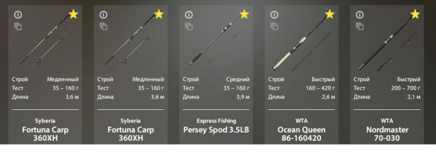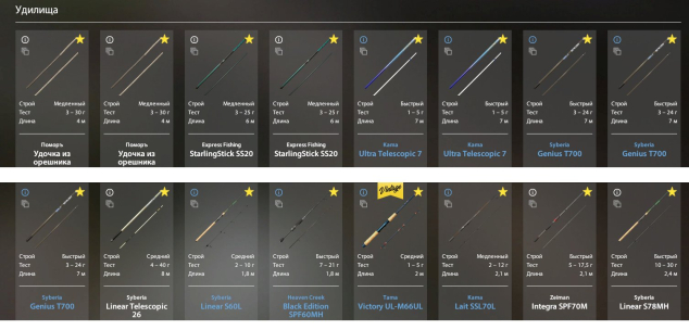 ► На аккаунте присутствует 𝟑𝟔 удилищ под различные задачи: