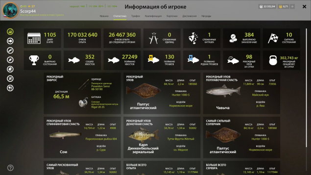 Подробное описание: Аккаунт универсальный. Есть все для комфортной ловли рыбы на Море и медном, матчевая ловля и спиннинг. Также прокачена добыча голд наживки на 97,7%. имеется 22000 серебра плюсом.