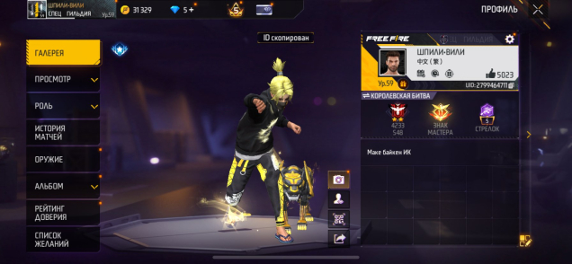 Free Fire аккаунт | 59 lvl | Мастер | 275 скинов