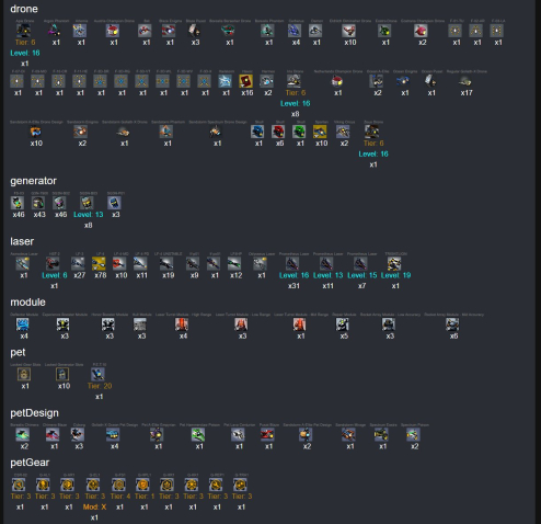 | 60k x3, 150k x4, 5m sab, 180 EMP, 2k ACM,