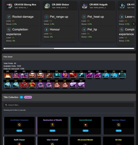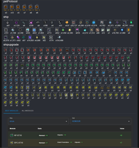 | Orcus (11laser dmg (+1); 19hp +9honour OR 22hp +3ncp +3penetration; 10 shield +3dmg; 11penetration OR 12 laser hitch OR 7honour),