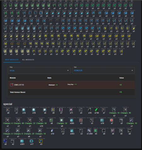 | Orcus (13dmg ncp; 11hp +1penetr; 13shield; 11penetr), Goliath+ (10 laser dmg; 25hp; 14penetr OR 5speed), Have modules for other ships