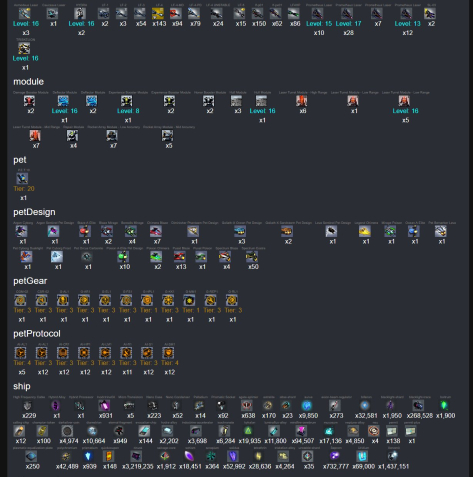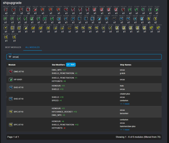 | ORCUS, Citadel+, Goliath+, Pusat+, Solace+, Spearhead+, Spectrum+, Centurion, Hammerclaw, Mimesis, Berserker, Can craft Plus ship,