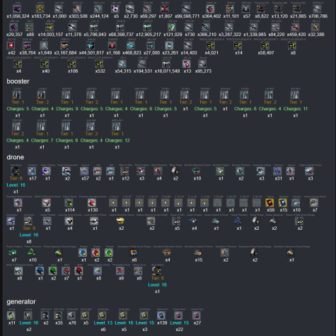 | 10m Diametrion, 3600 IAC, 930 I_Oil, 3.2m Rinusk, 260k Trace, 9k Aurus, 18k Schizm, 94k Cerebrum, 1.4m Xenomit,