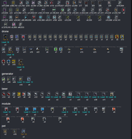 | 10 drones(16)| 10 Spartan| 10 Hercules| 30 Cerberus| 10 Hermes| 10 bo3(13)| 49 bo2| 4 p01(13)
