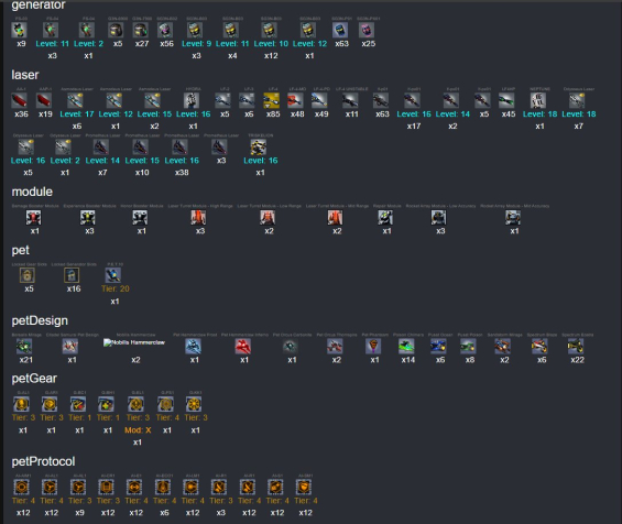 | all 22lvl + 11/60bl missions| myself made this acc from 0| most modules are not restabilized, total mods have 490