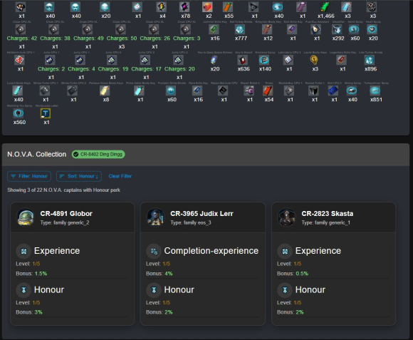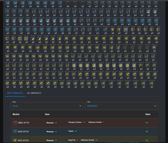 | Orcus (16laser dmg OR 15ncp+5speed; 4penetration +14hp OR 2dmg +20hp OR 3speed(+5); 18shield; 12penetration +1dmg (+6)| Can be 9+8+4honour),