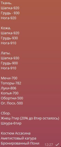 Если Вы видите у меня дублирование или похожие предложения, но с разными ценами — не беспокойтесь. Это означает, что один и тот же типовой товар (валюта, предметы, услуги) предлагают несколько разных игроков, которым он достаётся разными усилиями (кто-то фармит валюту/предметы вручную, кто-то владеет ботофермами и т.п. случаи).