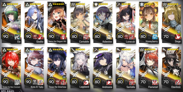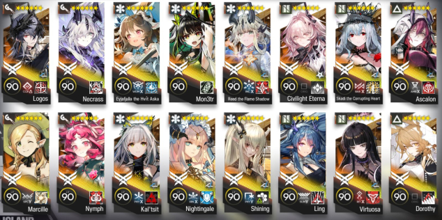 Краткое описание: Global. 120 LvL, 97,4% всех операторов, все лимитные персонажи. 124 Originium и 63к Orundum.
