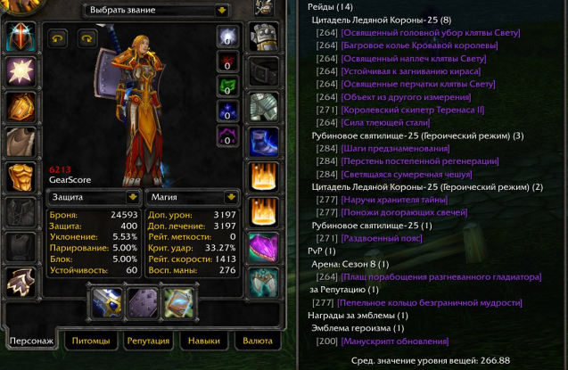 Подробное описание: Продаю достойного хпала ПвЕ 6.2 / ПвП 5.9 (вся инфа о шмотках на скринах) + Трансмут + Громовая Ярость