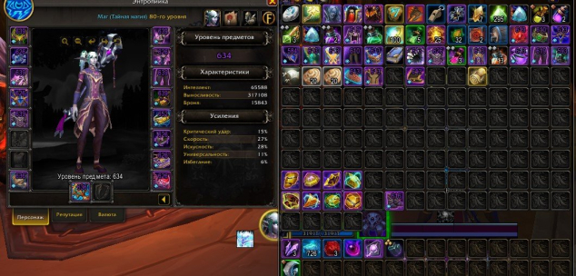 Всё подогнано под нужные статы. На маге крафт наручи и оружее, на шамане наручи и пояс на +к криту,