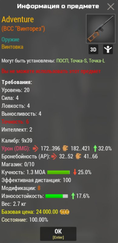Сервер: RU-3Краткое описание: ТОП ВСС 32% К Урону, -25% Кучность (1.3 МОА), +17.6% Износ (Любой сервер)