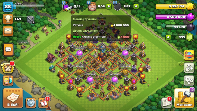 🟥Вторая деревня: 6 𝙡𝙫𝙡 ратуши, 1640 кубков.