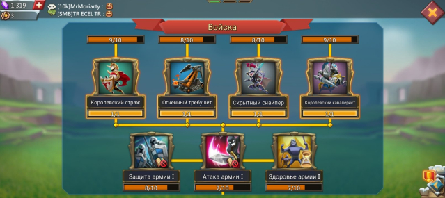 Войска 1.6+кк т3, шмот на скринах (хорошо соло атаки отбивает)