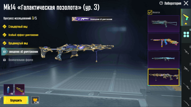 ✅Прокачиваемые пушки: Мk14 «Позолота» (3 ур), МГ3 «Парящий дракон» (1 ур), Томсон «Изысканная сирень» (2 ур), Бизон «Ночной гладиатор» (1 ур)