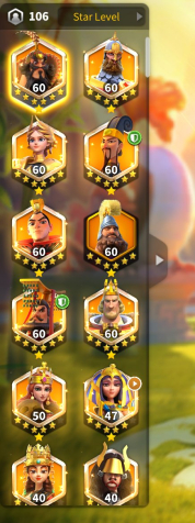 𑣲12 Exp meta commanders: 3 cavalry and 1 archer commanders with full legendary gear. And building an infantry march.