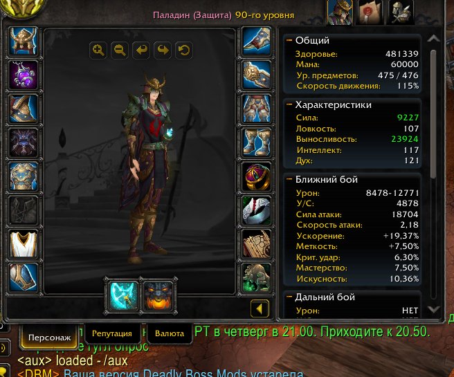 Краткое описание: Паладин (475 илвл) + Воин (472 илвл) 90 лвл 4 фул профы, маунты 280% (шмот фул небожители)