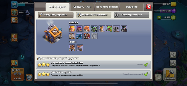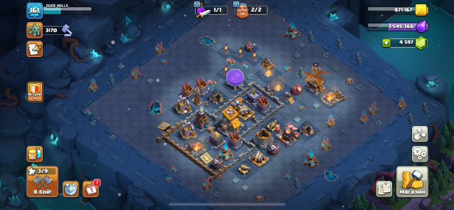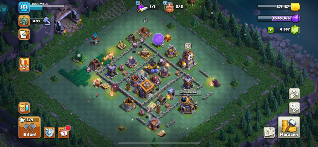 Уровень Ратуши: 13Краткое описание: 🟨🔥【 𝗧𝗛 𝟭𝟯】⚡ 𝟭𝟲𝟭 𝗟𝗩𝗟 ⚡💎 𝟰𝟱𝟬𝟬 ГЕМОВ 💎【ГЕРОИ — 𝟲𝟵/𝟲𝟰/𝟰𝟱/𝟰𝟴/𝟮𝟭】⚡ 𝟵 ДС 🟨🔥