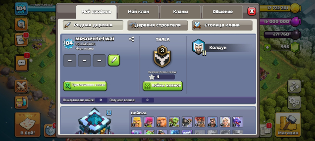Уровень Ратуши: 13Краткое описание: 🌸【𝟭𝟯 ТХ】 ❰🌟ФУЛЛ 𝟱𝟱%🌟❱ 🌸【⚔️𝟭 ЭПИК СНАРЯГА⚔️】🌸【41/46/29/10/7】🌸 【12-13 ЗАБОР】 ❰❤️❱