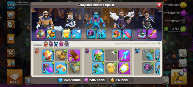 Уровень Ратуши: 17Краткое описание: 🔥🔥🔥【🔄ПЕРЕПРИВЯЗКА🔄】【РАТУША 17 ФУЛЛ】【ГЕРОИ-100/100/78/75/50】 【259 LVL】【9 СКИН + ОФОРМ】【2769 ГЕМОВ】🔥🔥🔥