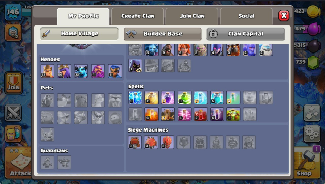 Уровень Ратуши: 13Краткое описание: 13 тх с прокачкой фулл 12, 53/60/32/41/5, 637 лвк, донат оформление, 739 гемов, описание👇