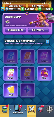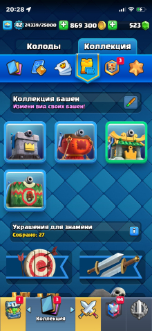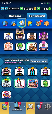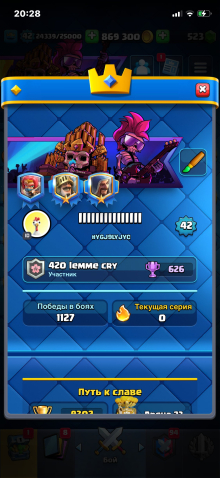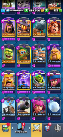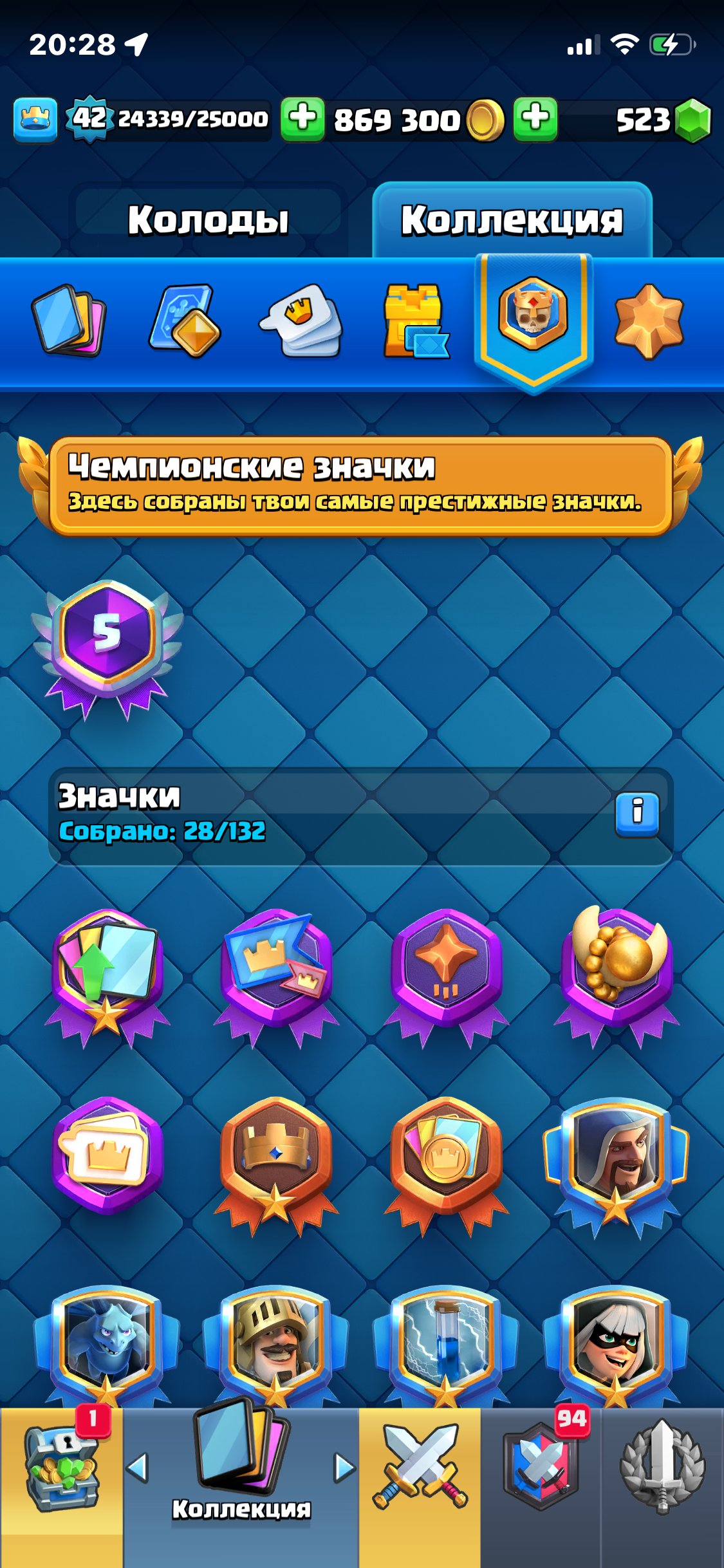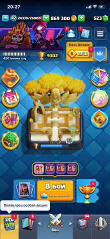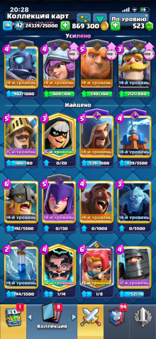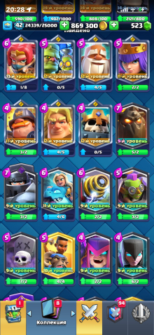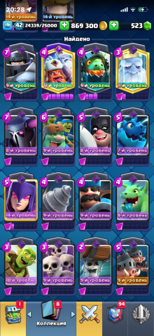 ➜ 869.300 монет・523 гема・42 уровень ・21 легендарная карта🌟