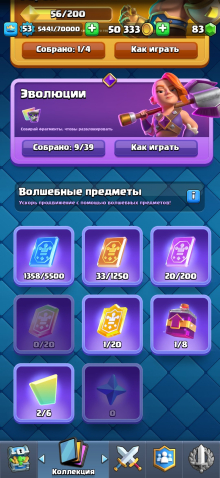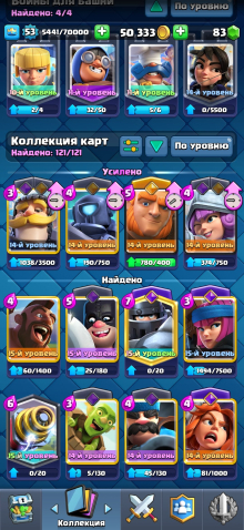 10000🏆 25 АРЕНА🏟️53 УРОВЕНЬ📶121/121 КАРТ🌟5 СКИНOB НА БАШНЮ🗼66 ЭМОДЗИ🪙5шт-15СИЛ, 8шт-14СИЛ💪9 ЭВО👾, 25 арена, 53 уровень, 10000 кубков, 121 карт, 21 лег