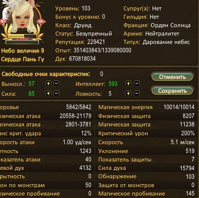 Краткое описание: Друид 103, 30па, 9 величие, 200к серы