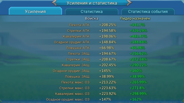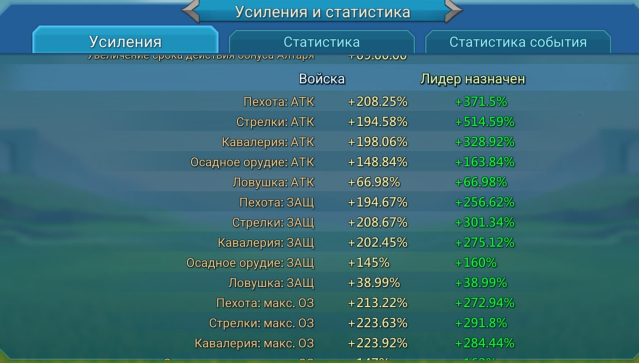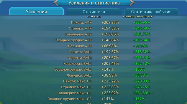 Статы пехи — 532%, луки — 539%, кони — 510%.