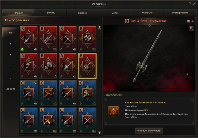 Релики много красных почти на любую профу, расчленитель и резак сверкающие.