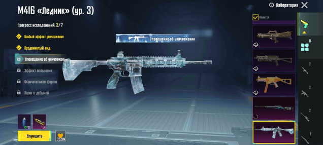 Подробное описание: Ледник м416 3ур есть 3материала и 7частей 80+краски. Есть смена Ника.