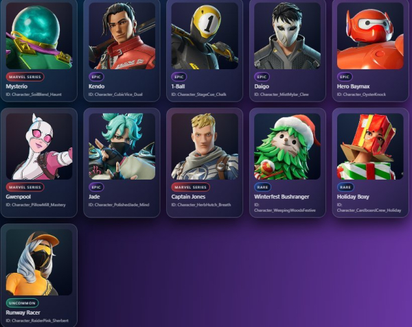👕 26 скинов (4 платных) ≈ 6 400 V-Bucks
