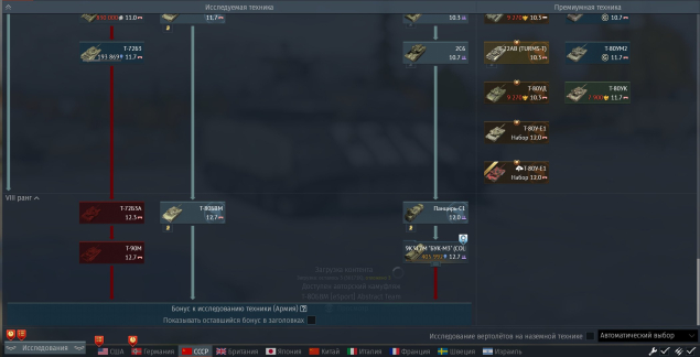 • Наземка: Фулл ветка Т-80, Ветка Т-72 до Т-72БЗ, Ветка зениток до Панциря, ветка БМП до БМП-2, есть БМП-2М