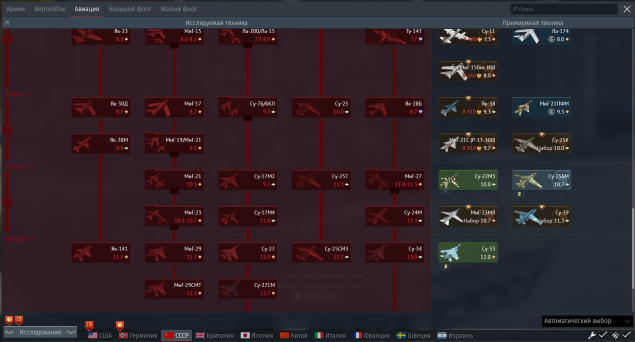 • Авиация: КА-52, СУ-33, СУ-25БМ, СУ-22М3, ветка прокачана до IV ранга