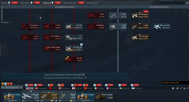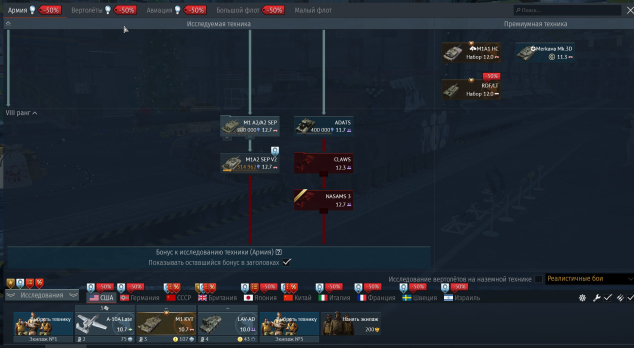 США: Танки- ТОП 8 ранг(M1A2 Abrams), Самолеты- ТОП 8 ранг(F-15E,F/A-18A), Тяжелый флот- 5 ранг
