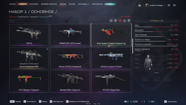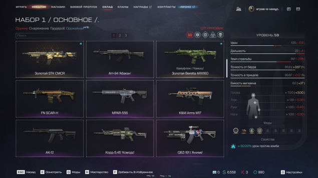 есть а545, берета, абакан, тайп 98, ак12, асвал кастом и обычный, мпар, корд, стк, кбз, м16кастом, фнскар
