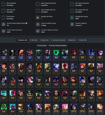 🎀❤️LOL❤️【EUW】21 скин/81 персонаж/179 Уровень/N0303🎀❤️, Продажа, уровень 179, чемпионы 50, скины 21, Нет ранга