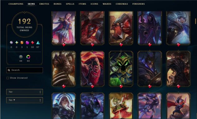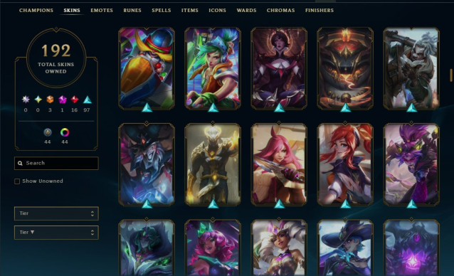 ✅ Skins: 192 total, including rare old skins (Fiddlesticks & Alistar)