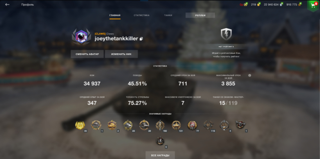 🔴 3 ТОП 🔴 20 ПРЕМ 🔴 34937 БОЕВ 🔴 219 ЗОЛОТО 🔴 22.940.634 СЕРЕБРО