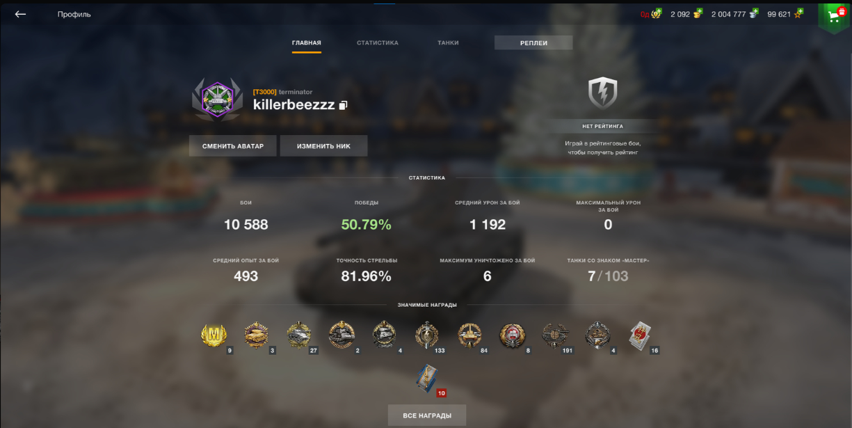 🔴 3 ТОП 🔴 11 ПРЕМ 🔴 10588 БОЕВ 🔴 2092 ЗОЛОТО 🔴 2.004.777 СЕРЕБРО