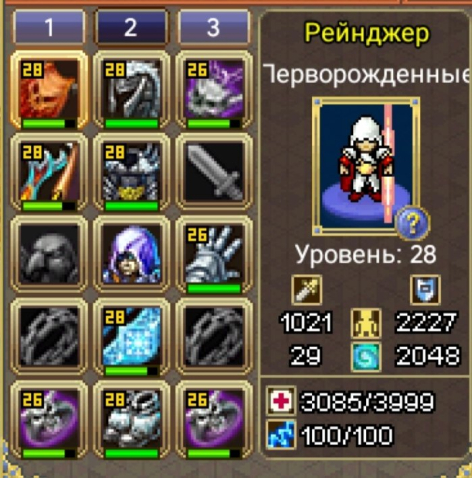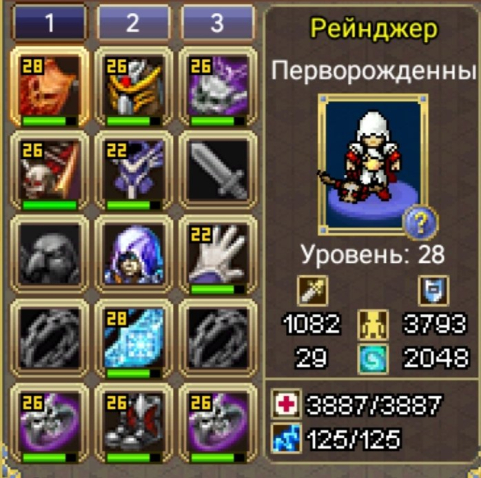 Рей 28: лук 28+8 арб 28+8 пве 22-26+7 плащ 22 с крафта +6 без вампи, кольца амуль 26 с бала с вампой все +5.