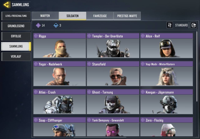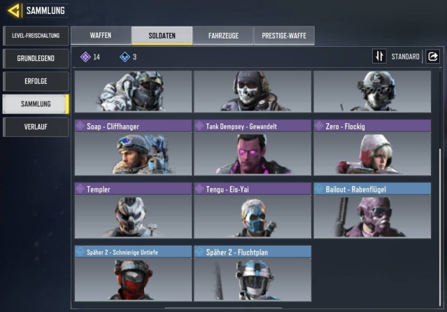 🧍 14 эпических и 3 редких солдата (всего 17)