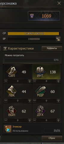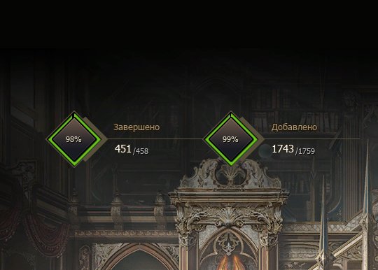 Коллекция закрыта полностью, за исключением временных. Краски все Инт 21 (печать). Эликсиры 21/21. Узоры 17/19/19/20. Камушки в венце и маске топовые — на силу Крит. атаки умений.