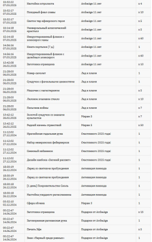 Если Вы видите у меня дублирование или похожие предложения, но с разными ценами — не беспокойтесь. Это означает, что один и тот же типовой товар (валюта, предметы, услуги) предлагают несколько разных игроков, которым он достаётся разными усилиями (кто-то фармит валюту/предметы вручную, кто-то владеет ботофермами и т.п. случаи).