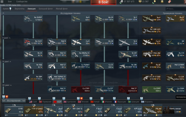 — Россия: танки до топов включительно, авиация есть 6го