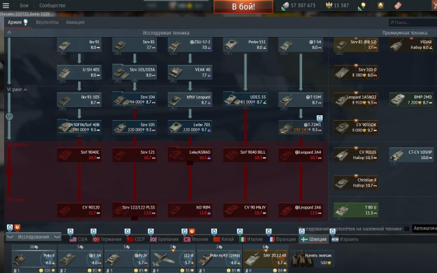 — Германия: танки почти все до топов включительно, авиация до 5го ранга (есть большой флот 4 ранга);