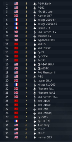 F-16C F-15C MSIP || F\A-18C Late || F14 || F-15E || A-4E Early