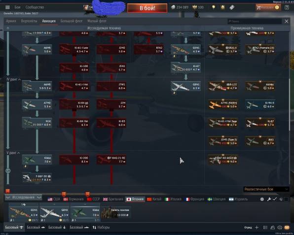 2)Глобал✈️Япония V Ранг✈️Авиация От Ки-10 до Nakajima Kikka-Kai 14ур Лейтенант .